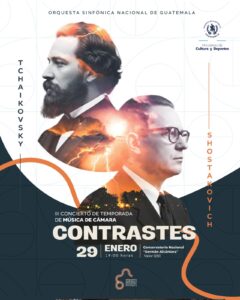 III Concierto de Temporada de Música de Cámara – CONTRASTES 🎻 La @Orquesta Sinfónica Nacional de Guatemala te invita a vivir una velada donde el diálogo
