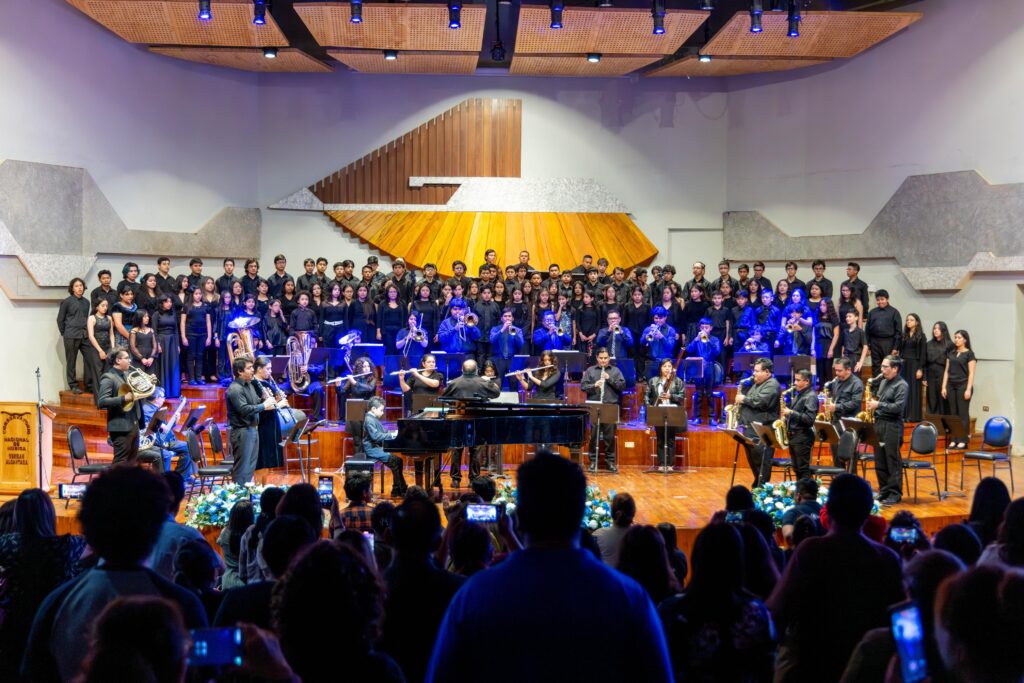 El poderoso y vibrante sonido de la Banda Sinfónica del Conservatorio Nacional de Música, bajo la dirección del maestro Ramiro Vivar, retumbó en el auditorio de la querida institución, que celebra este mes sus 150 años de existencia.