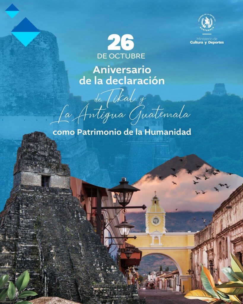 El 26 de octubre de 1979, la UNESCO declaró a la ciudad de Antigua Guatemala y al Parque Nacional Tikal como Patrimonio de la Humanidad.