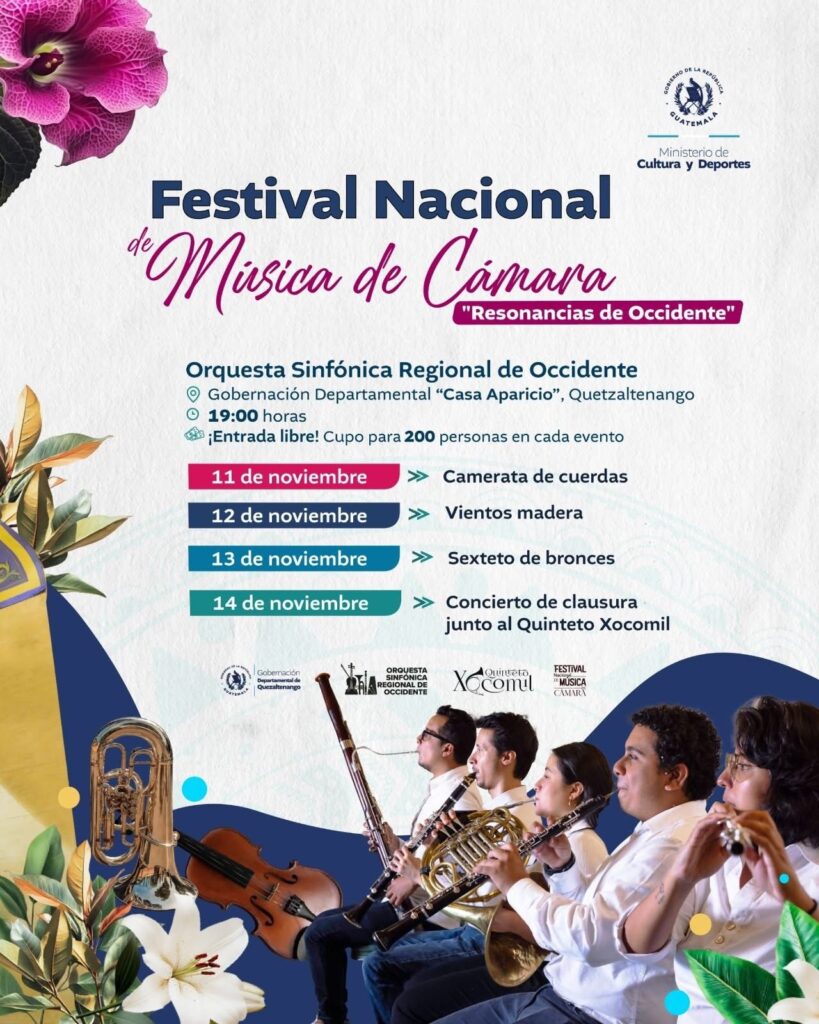 El Ministerio de Cultura y Deportes (MCD) te invita a las presentaciones de la Orquesta Sinfónica Regional de Occidente en la Gobernación Departamental “Casa Aparicio”, Quetzaltenango.
