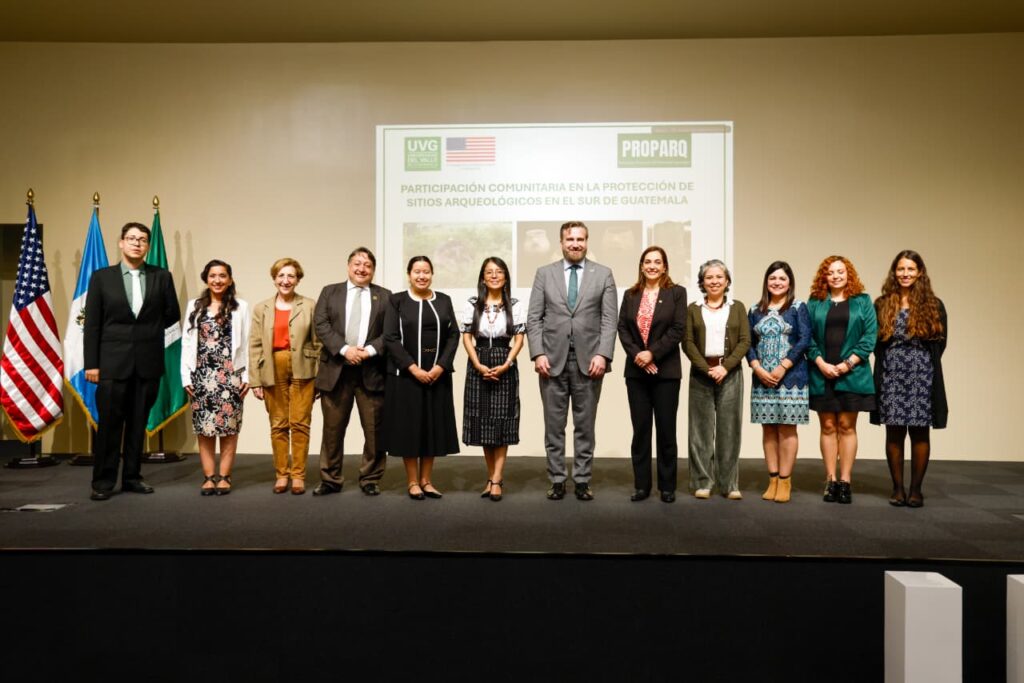 El acto de clausura contó con la presencia de la viceministra Laura Cotí Lux; el embajador de Estados Unidos, Tobin Bradley; la decana de la Facultad de Ciencias Sociales de la UVG, Linda Asturias; la vicerrectora de Investigación, Vinculación y Desarrollo, Mónica Stein, y estudiantes de arqueología que formaron parte del proyecto.