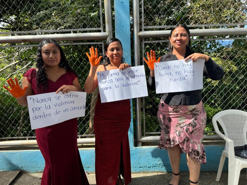 Como parte de la actividad, se realizó la dinámica participativa “Mis manos dicen NO a la violencia”, en la cual las mujeres pintaron sus manos y las plasmaron en un cartel como símbolo de unión, fuerza y compromiso. Posteriormente, se llevó a cabo una reflexión colectiva sobre la importancia de reconocer su propia voz, fortalecer la autoestima y actuar juntas ante cualquier manifestación de violencia.