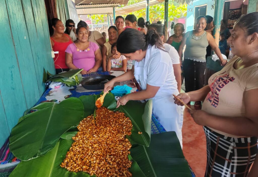 El proceso de aprendizaje incluyó el uso de insumos locales como maní, ajonjolí y pepitoria pelada, además de azúcar. Los productos fueron presentados sobre hojas de plátano y maxán, recursos naturales que, además de embellecerlos, conservan la tradición en cada preparación.