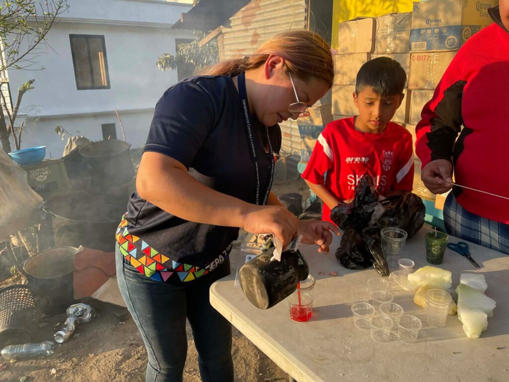 La actividad estuvo dirigida a 30 líderes comunitarios, entre jóvenes y adultos de la localidad. Durante el taller, las y los participantes fortalecieron su creatividad y ampliaron sus conocimientos culturales mediante la elaboración de velas artesanales que incorporaron colores y símbolos representativos de la cosmovisión maya.