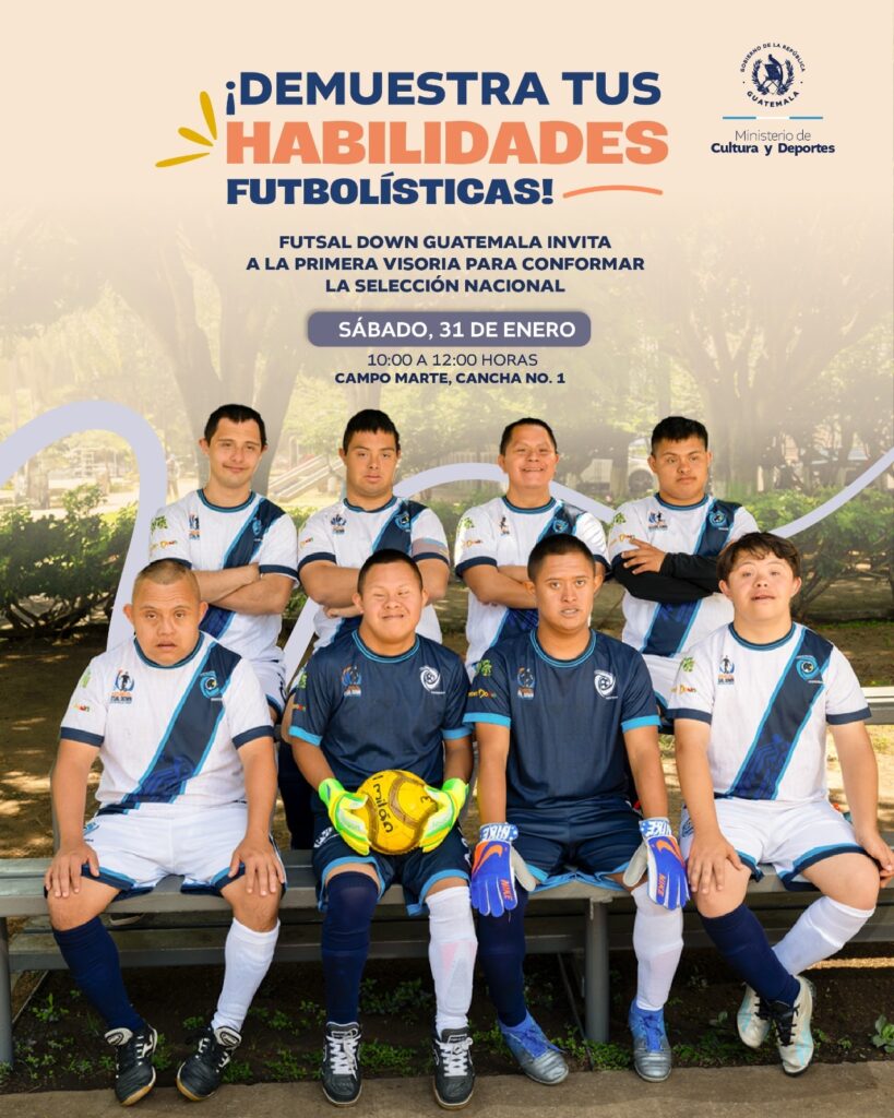 La Asociación Nacional de Futsal Down y Fútbol PC Guatemala convoca a atletas de alto rendimiento con Síndrome de Down entre 17 a 40 años a su primera gran visoria.