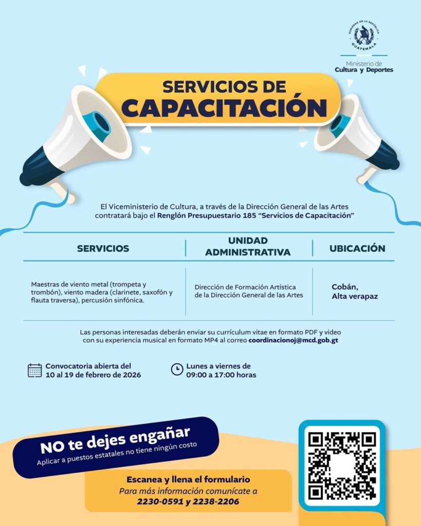 El Viceministerio de Cultura, a través de la Dirección de Formación Artística, de la Dirección General de las Artes, realiza la siguiente convocatoria: