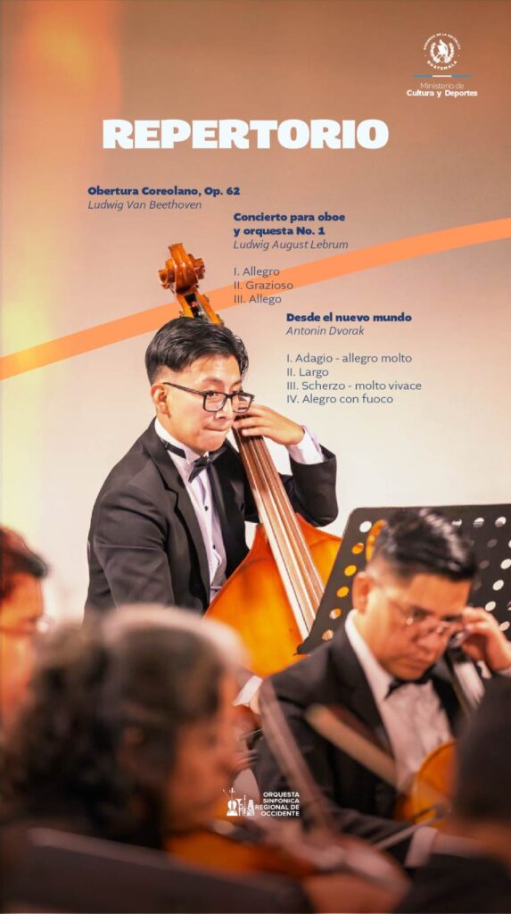 🙌 Acompáñanos a estas presentaciones donde tendremos como invitado especial a Carlos Galdámez, oboísta y cornista inglés de la Orquesta Sinfónica Nacional.