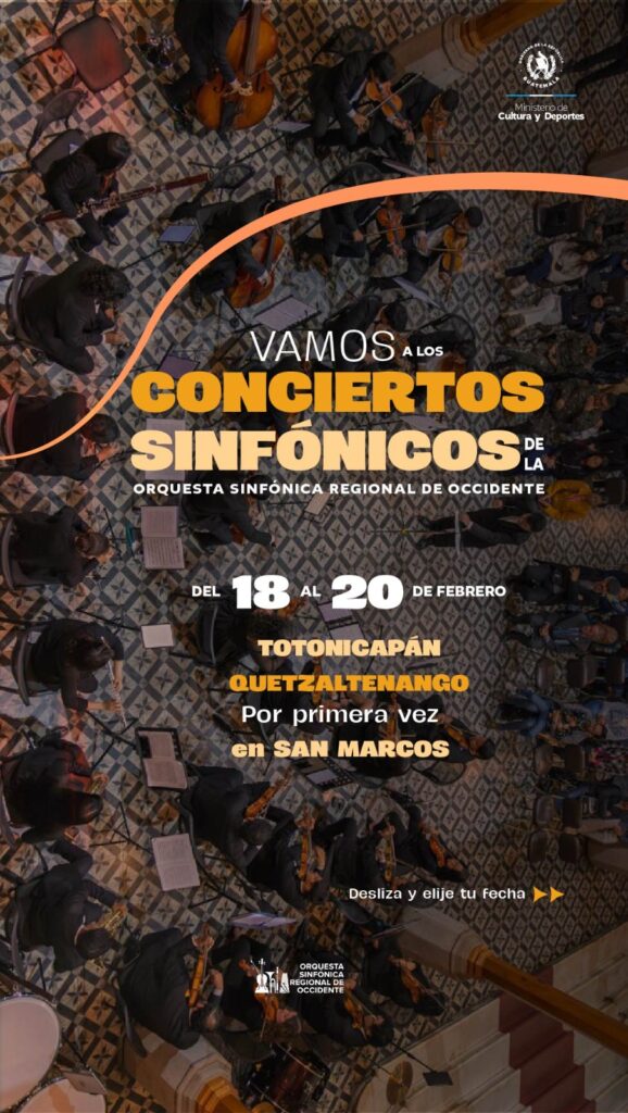 Escenarios de Totonicapán, Quetzaltenango y, por primera vez, en San Marcos desbordarán talento con las presentaciones de la Orquesta Sinfónica Regional de Occidente.