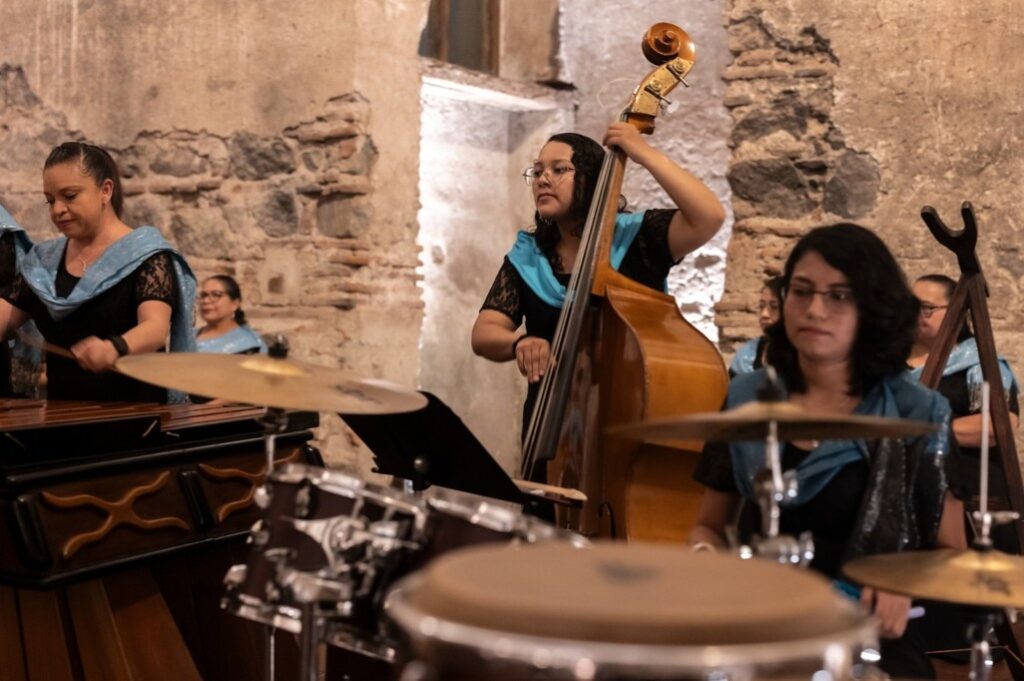 Este es el mayor de los instrumentos de la familia de cuerda frotada, y el de sonido más bajo. «El contrabajo refuerza la base armónica de la marimba, para poder incursionar en obras populares o académicas que requieran de notas más profundas o graves» indica el maestro Julio García Raymundo, director de la Marimba Femenina de Concierto, hablando sobre este instrumento y su importante papel dentro de los conjuntos marimbísticos.
