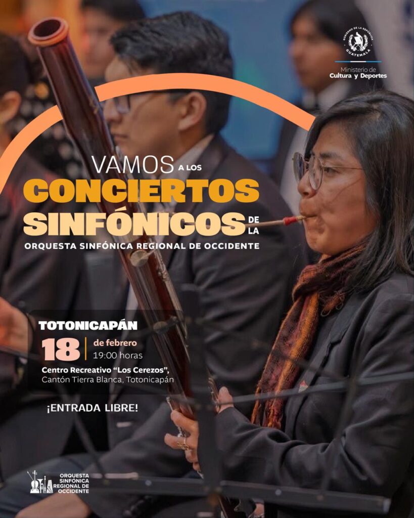 ¡Velada musical! Hoy tenemos una cita en Totonicapán con nuestra Orquesta Sinfónica Regional de Occidente. Te esperamos para vivir una experiencia inolvidable, donde las composiciones de grandes exponentes de la música cobran vida entre notas.