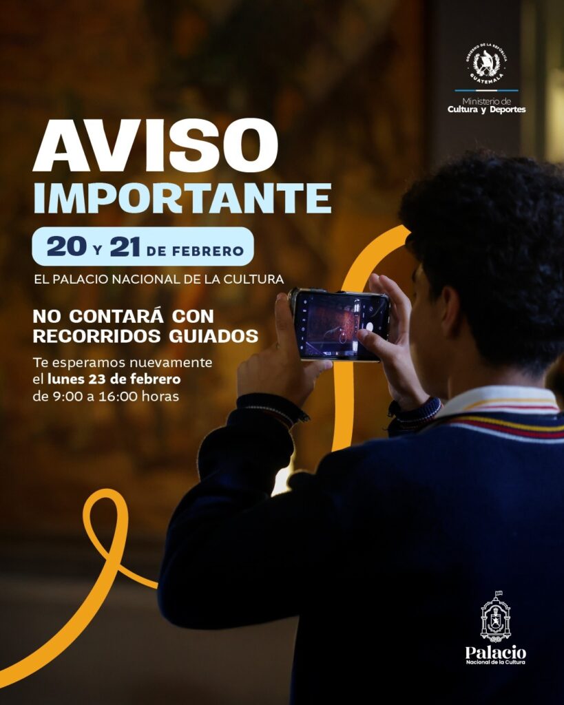 El 20 y 21 de febrero el Palacio Nacional de la Cultura no contará con recorridos guiados.