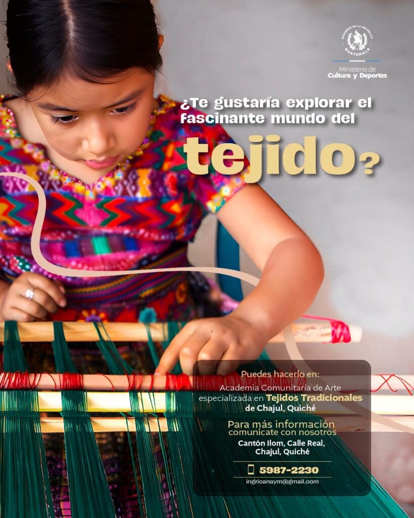 La Academia Comunitaria de Arte especializada en Tejidos Tradicionales de Chajul, Quiché, invita a aprender y preservar una de las expresiones más valiosas de nuestra identidad cultural.