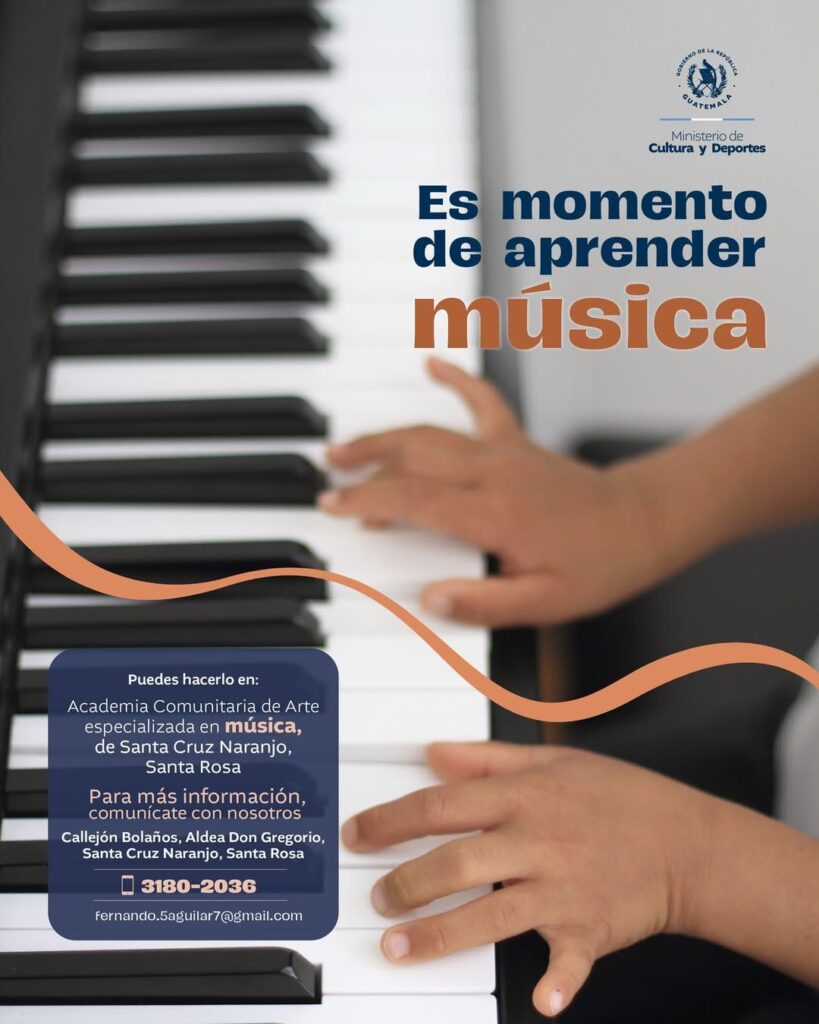 La Academia Comunitaria de Arte especializada en música, de Santa Cruz Naranjo, Santa Rosa, abre sus puertas para que desarrolles tus habilidades en un espacio lleno de aprendizaje, tradición y pasión artística.