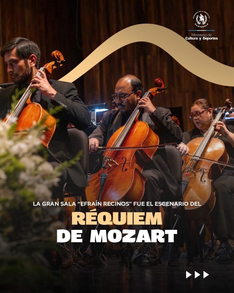 Con un lleno total en la Gran Sala “Efraín Recinos”, y la presencia de autoridades de gobierno encabezadas por el presidente de la República, Bernardo Arévalo de León, acompañado de la primera dama Lucrecia Peinado, se presentó el magnífico “Réquiem”, de Wolfgang Amadeus Mozart.