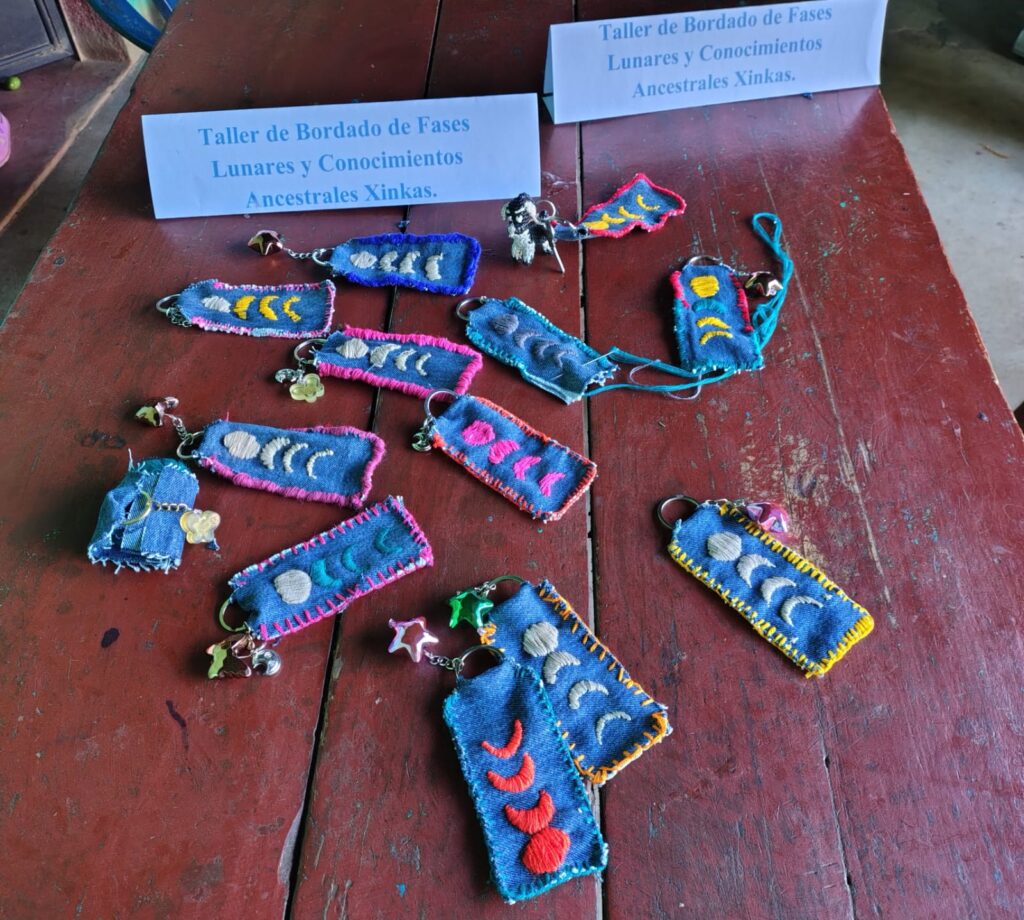 Durante la actividad, las participantes transformaron el bordado tradicional en llaveros representativos de las fases lunares, estableciendo un vínculo directo entre la observación astronómica y la técnica artesanal.
