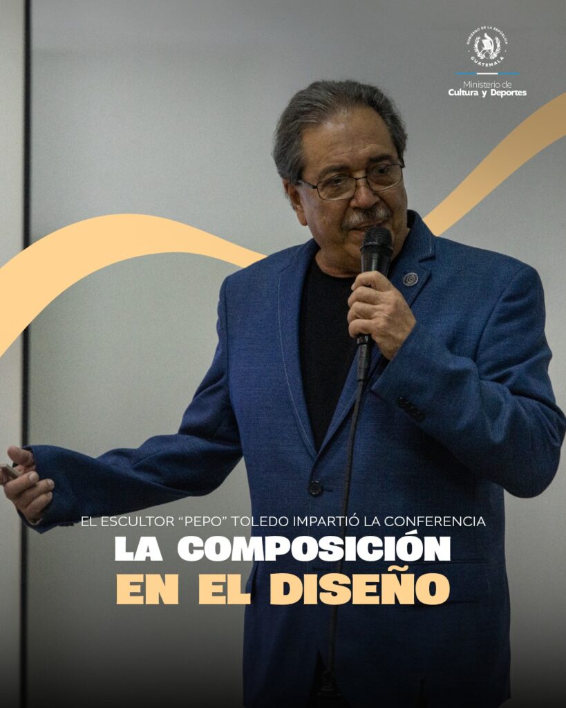 El escultor José «Pepo» Toledo impartió la conferencia “La composición en el diseño”, donde abordó principios como el equilibrio, el ritmo visual, el contraste y la proporción áurea.