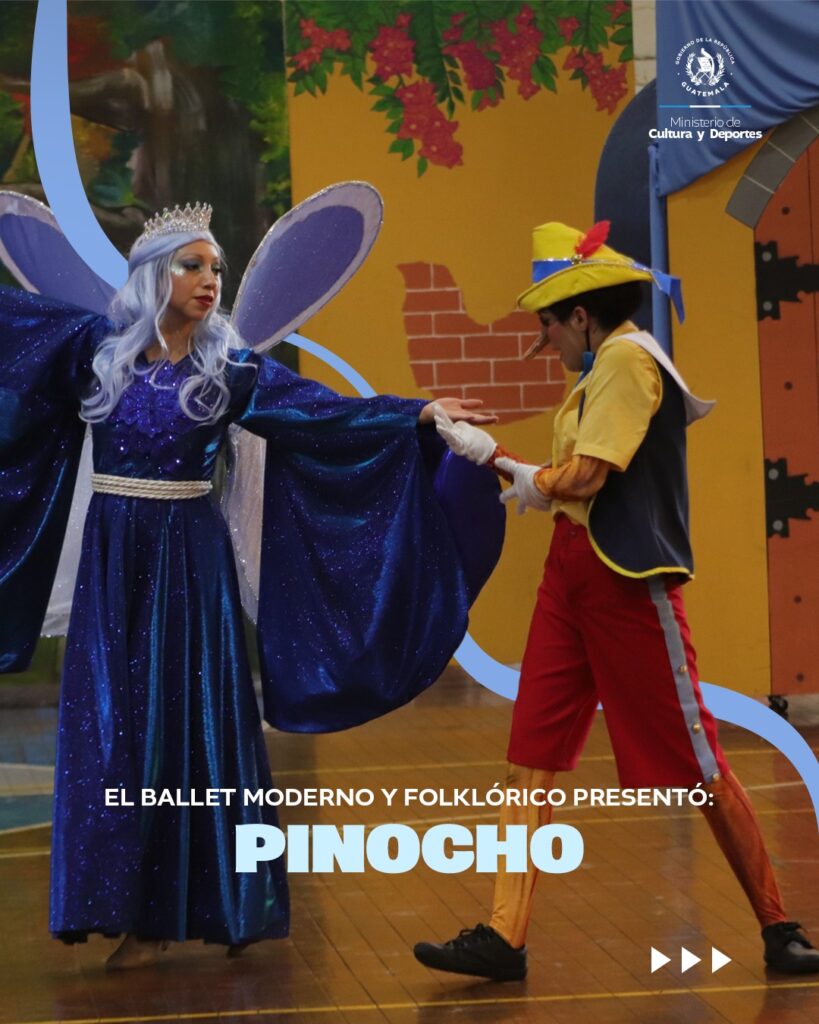 ¡Estreno departamental! 🙌 El Ballet Moderno y Folklórico presentó por primera vez la puesta en escena “Pinocho”; una obra que durante tres días consecutivos cautivó a más de 7 mil estudiantes dentro de las instalaciones del Gimnasio Municipal de Mazatenango.
