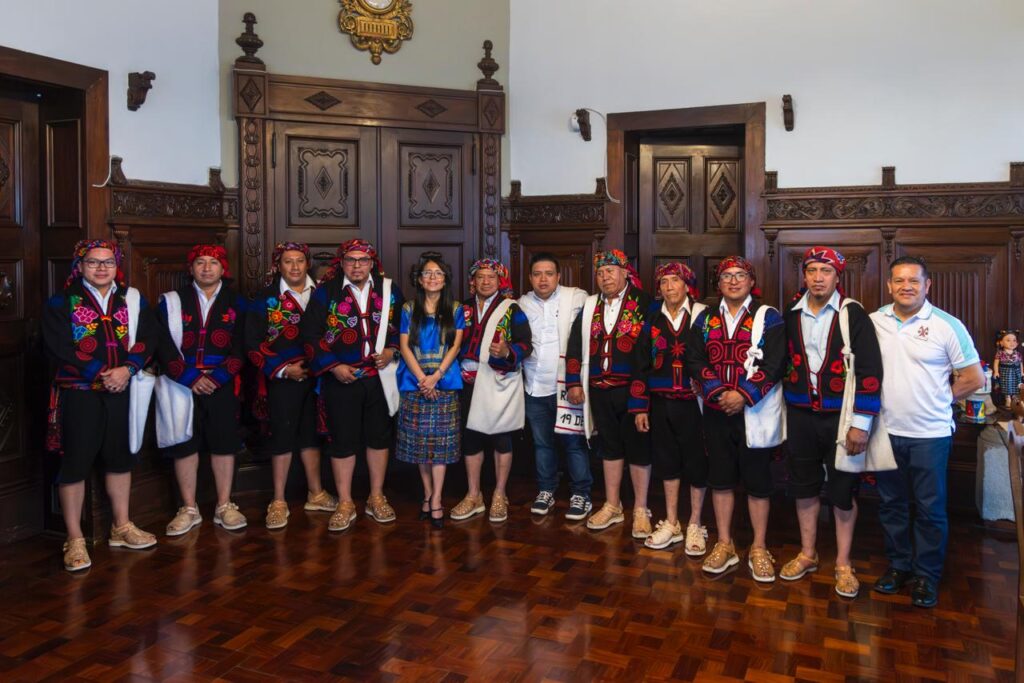 Engalanados con trajes tradicionales y acompañados de elementos representativos, integrantes de la Asociación Juvenil Masheña de Santo Tomás Chichicastenango, Quiché, visitaron el Palacio Nacional de la Cultura para solicitar la declaratoria del Baile Regional 19 de Diciembre como Patrimonio Cultural Intangible de la Nación.