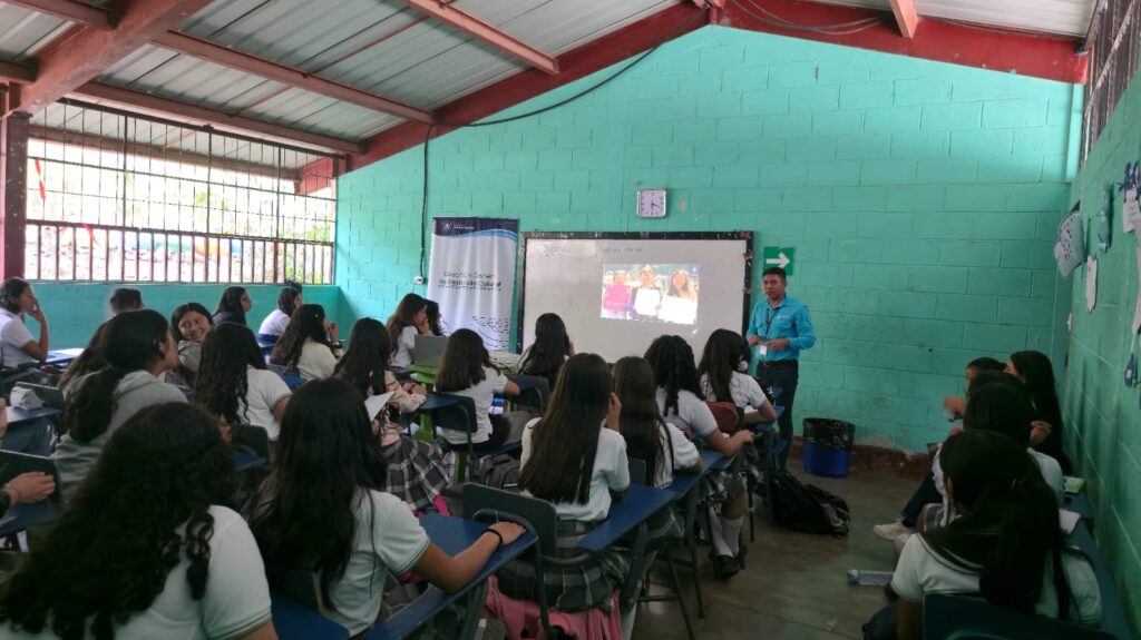Promotores de la Dirección General de Desarrollo Cultural, en coordinación con la Dirección Municipal de la Mujer, realizaron la conferencia «Día Internacional por los Derechos de la Mujer», dirigida a estudiantes en Oratorio, Santa Rosa.