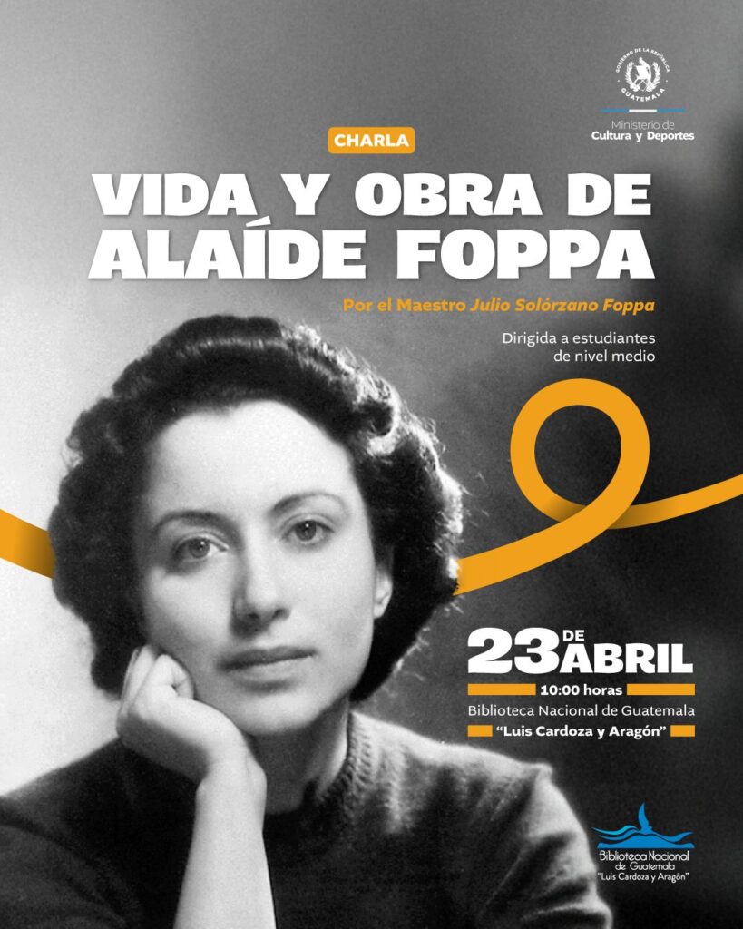 Te invitamos a la charla “Vida y obra de Alaíde Foppa”, un espacio para conocer y reflexionar sobre el legado de una de las figuras más importantes de la literatura y el pensamiento en Guatemala.
